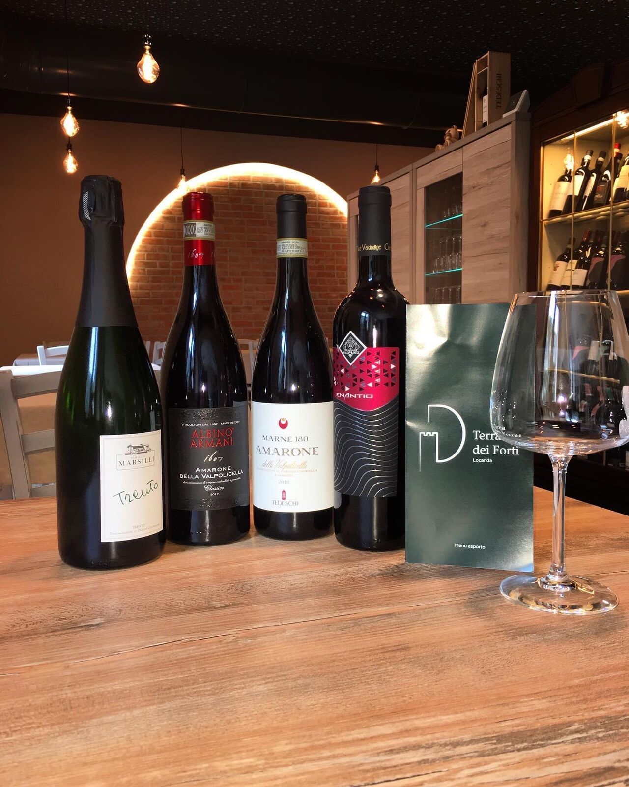 Avete l'opportunità di degustare una vasta scelta di vini locali delle nostre cantine; Albino Armani, Cantina Valdadige, Tenuta la Casetta Marsilli e Tedeschi.